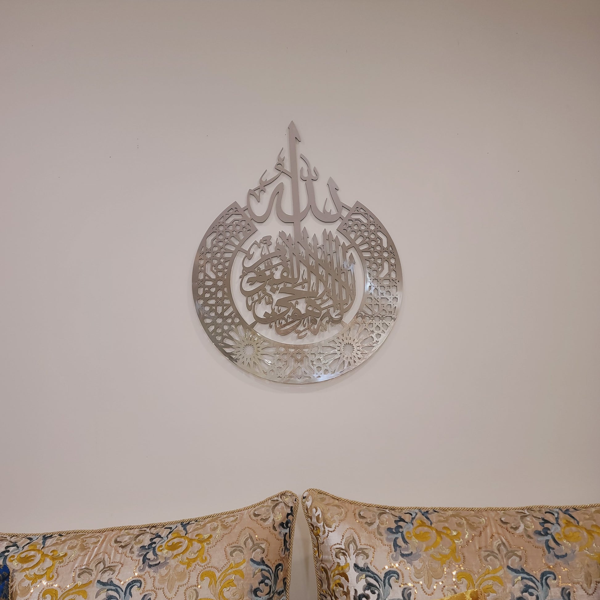 Q-003 / Ayat Al-kursi with Arabsque / Metal Alucobond / Islamic Home Decor / Mirror/ Arabic Calligraphy / Islamic Gifts / wall art