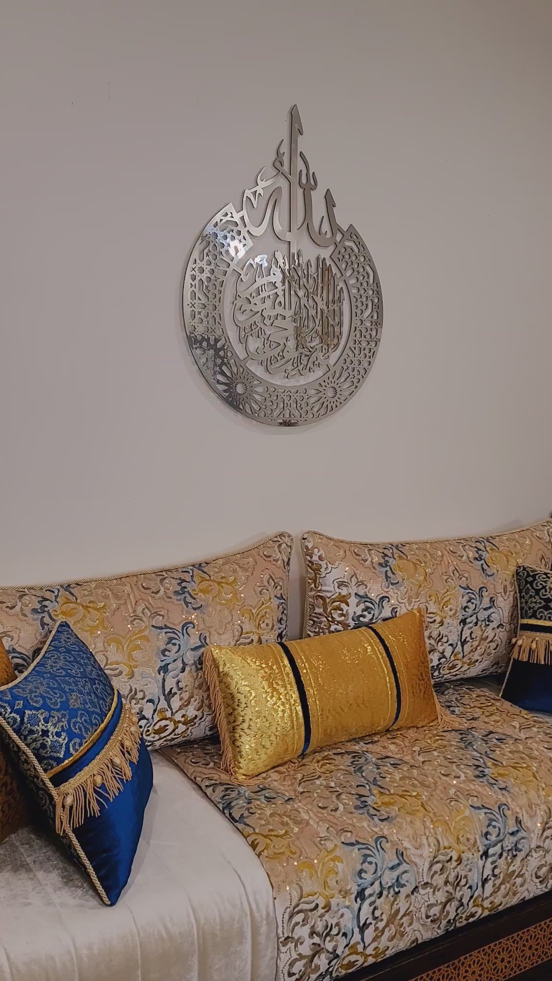 Islamic Arabic Calligraphy Islamic wall art Ayat Alkurssi with arabesque design with mirror effect